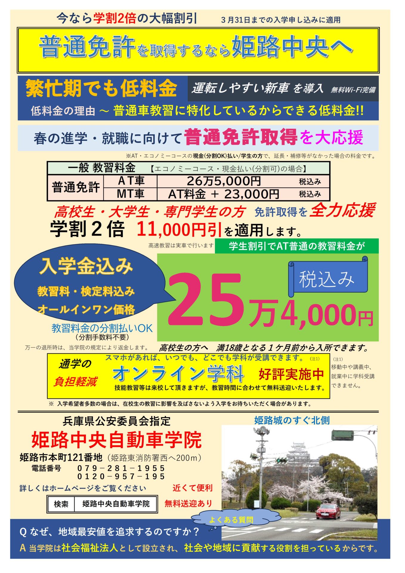 上記のAT料金+23,000円(第2段階修了時にお支払)